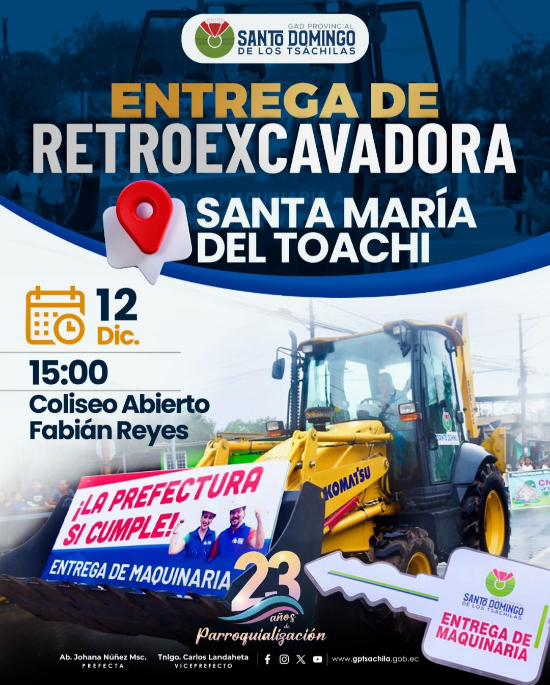 Mañana entregamos una retroexcavadora para fortalecer la atención vial en ramales y recintos de Santa María del Toachi!